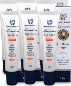 Soft moisturizing Lanolin Lip Balm enriched with Vitamin E, Bee Propolis, Manuka Honey for its healing properties and SPF15+ sunscreen and Almond Oil to protect the lips.