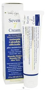 Robin Logan's Seven 7 Cream Homeopathic Skin Healing and Moisturizing Ointment - 2 oz. (60 ml) Robin Logan's 7 Cream Homeopathic Skin Healing and Moisturizing Ointment contains antiseptic Calendula officinalis plus moisturizers Shea Butter, Coconut, Avocado, Neem Oils and Manuka Honey, Manuka Oil, and Aloe Vera. Robin Logan's 7 Cream Homeopathic Skin Healing and Moisturizing Ointment helps heal minor wounds, burns and scalds. Robin Logan's 7 Cream Homeopathic Skin Healing and Moisturizing Ointment relieves redness, stinging and swelling. Robin Logan's 7 Cream Homeopathic Skin Healing and Moisturizing Ointment protects against skin infections. What is 7 Cream? Robin Logan's 7 Cream is the perfect answer for troubled skin. Robin Logan's 7 Cream assists in healing minor wounds such as cuts, burns and minor skin irritations. It also moisturizes and relieves itching due to dry skin. Robin Logan's 7 Cream, while excellent as a moisturizer and protective barrier cream was also designed to be a promoter of healing for dry damaged skin.Robin Logan's 7 Creamis very useful for injuries and burns as well as gardener's hands and mosquito bites and can be used as a daily facial moisturizer. Robin Logan's 7 Cream is also being used in hospitals and special treatment centers for burns due to radiation. Many professions have found Robin Logan's 7 Cream helpful including nurses, car mechanics, wood workers and any other work where your hands are subject to harsh conditions, repeated washing, etcetera. The unique aspects of Robin Logan's 7 Cream formula are in the combination of ingredients. Organic OMA 16+ Manuka Honey, Aloe Vera and Calendula are recognized by Health Canada as active healing ingredients and the addition of Neem, Avocado, Coconut and Manuka Oils - each with their own special properties - with Shea Butter provide further moisturizing benefits.